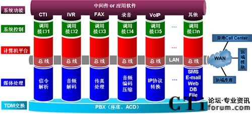 首先是為業(yè)務(wù)抽象提供了硬件基礎(chǔ);其次是可以完成所有媒體處理功能的冗余備份,實(shí)現(xiàn)系統(tǒng)低成本的高可用以及在線擴(kuò)容和升級(jí);最重要的是這種架構(gòu)是一個(gè)水平式的系統(tǒng)架構(gòu),而不是以往那種垂直分散的結(jié)構(gòu),水平式系統(tǒng)架構(gòu)屏蔽了底層功能的技術(shù)實(shí)現(xiàn),通過業(yè)務(wù)抽象為業(yè)務(wù)流程提供功能部件的組合,用戶只關(guān)注業(yè)務(wù)流程,而不用關(guān)心底層的技術(shù)實(shí)現(xiàn),這對(duì)呼叫中心功能的完善起著至關(guān)重要的作用。