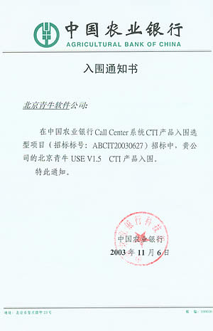 青牛軟件成功入圍中國(guó)農(nóng)業(yè)銀行Call Center產(chǎn)品選型