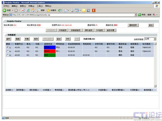 - 監(jiān)控內(nèi)容豐富完善:包括內(nèi)線(xiàn)(座席)、外線(xiàn)(中繼)、技能組、客戶(hù)排隊(duì)、IVR等;