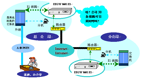 EEGW 860X(X=1、2、4路)E1網(wǎng)關(guān)應(yīng)用