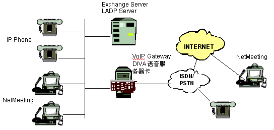 上。當用戶點擊這一按扭時,VoIP的應(yīng)用程序,比如NetMeeting,將自動地在他們的計算機中啟動。這個應(yīng)用程序?qū)⒋蜷_同DIVA VoIP 網(wǎng)關(guān)服務(wù)器的連接,然后再由網(wǎng)關(guān)連接到