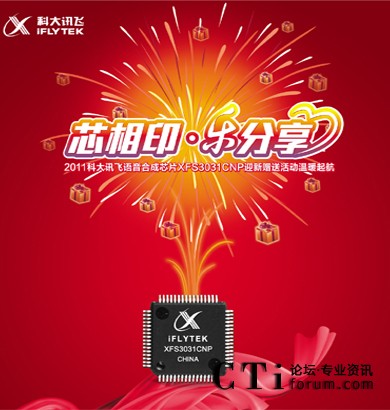 “芯” 相印,樂(lè)分享!為答謝并回饋廣大新老用戶,2011科大訊飛語(yǔ)音合成芯片XFS3031CNP迎新贈(zèng)送活動(dòng)12月28日起溫暖起航!