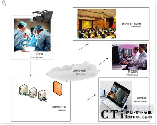 在手術(shù)示教系統(tǒng)幫助下,可以將學(xué)習(xí)過(guò)程和醫(yī)療診斷現(xiàn)場(chǎng)分開,學(xué)生可以在獨(dú)立的學(xué)習(xí)室中學(xué)習(xí),同時(shí)與現(xiàn)場(chǎng)的醫(yī)生進(jìn)行溝通,使得每個(gè)學(xué)生都能清楚地看到現(xiàn)場(chǎng)操作情況、醫(yī)學(xué)診斷影像和診治結(jié)果,避免一大群人擁擠在手術(shù)室中的現(xiàn)象,給手術(shù)醫(yī)療提供了一個(gè)寬敞、清靜的環(huán)境,也給年輕醫(yī)生提供了大量觀摩專家手術(shù)的機(jī)會(huì),為醫(yī)院培養(yǎng)后備人才提供了有力的保障。