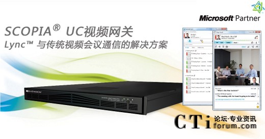 通過SCOPIA UC視頻網(wǎng)關(guān),Microsoft的Lync和Office Communicator用戶可以輕松地與任意基于國(guó)際標(biāo)準(zhǔn)建立的傳統(tǒng)視頻會(huì)議系統(tǒng)無縫連接,無論該系統(tǒng)是會(huì)議室型高清設(shè)備、桌面型終端,抑或網(wǎng)真系統(tǒng)等等。采用該解決方案,用戶可同時(shí)享用傳統(tǒng)視頻會(huì)議和Lync、Office Communicator桌面辦公通訊系統(tǒng)帶來的便捷和高效。