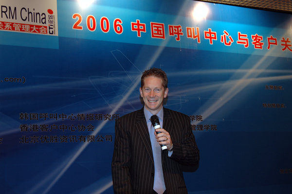 2006年4月3日至5日,2006中國呼叫中心與客戶關系管理大會在北京國際會議中心隆重召開,以下是K8主題演講實錄:西蒙.克瑞斯:早上好!這是我的助手,大家歡迎!我想傳達呼叫中心的問題節(jié)奏會快一點,有高級呼叫中心十個課題。不是對初學者的,也不是對新呼叫中心的,是幫助呼叫中心行業(yè)能夠成熟的,也就是說呼叫中心行業(yè)的兒童不宜的題材!人人談呼叫中心的時候就談到這個模型(PPT)三個因素,人、流程和技術(shù)。但是這個模型沒有包括真正只有戰(zhàn)略意義的呼叫中心的因素,這個模型對運行家、工廠是非常有效的,F(xiàn)在我們用的這個模型是叫(PPT)模型,F(xiàn)在言歸正傳,開始!