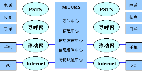 S&C UMS統(tǒng)一消息系統(tǒng)是一套具有標(biāo)準(zhǔn)化和開放性的綜合信息增值服務(wù)平臺,由呼叫中心、信息中心、信息發(fā)布中心、信息編輯中心、身份認(rèn)證中心組成,系統(tǒng)運(yùn)營商根據(jù)這些中心提供的E-Mail轉(zhuǎn)電話(手機(jī)、傳真、尋呼)、電話(手機(jī)、傳真、尋呼)轉(zhuǎn)Mail、電話(手機(jī)、傳真、尋呼、Mail)留言、個人定制信息到達(dá)通知……等功能最終實(shí)現(xiàn)為用戶提供全面的個性化信息網(wǎng)絡(luò)商務(wù)服務(wù)。