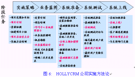 下圖是HOLLYCRM公司項(xiàng)目實(shí)施方法論的一個(gè)概貌,可供大家參考。