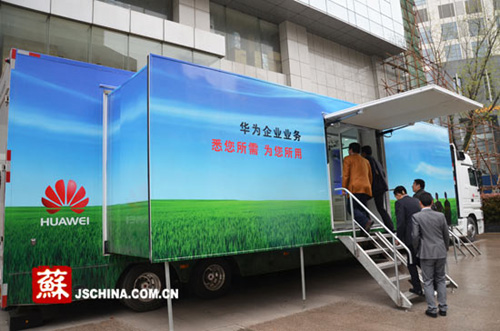 今天下午,“2012炫動ICT中國行——華為企業(yè)業(yè)務解決方案巡展”江蘇站在南京啟動,作為全球領(lǐng)先的信息與通信解決方案供應商,華為通過業(yè)務展車向市場全面展示ICT(“信息和通信技術(shù)”)行業(yè)解決方案。