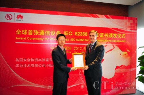 CTI論壇(ctiforum)6月5日消息(記者 歐陽): 近日,全球產(chǎn)品安全檢測和認(rèn)證領(lǐng)域的領(lǐng)導(dǎo)者UL宣布,為全球領(lǐng)先的信息與通信解決方案供應(yīng)商——華為旗下的8款S5700系列交換機(jī)頒發(fā)UL全球首張通信類產(chǎn)品的IEC62368證書。作為業(yè)界首個(gè)獲得UL頒發(fā)的IEC62368證書的公司,華為為行業(yè)樹立了標(biāo)桿,更體現(xiàn)了華為高度關(guān)注安全設(shè)計(jì)的核心理念。
