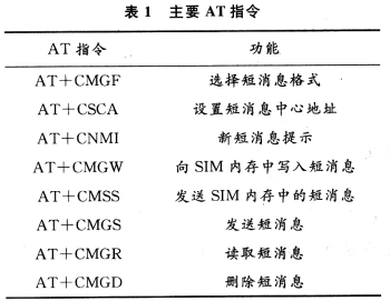 AT即Attention,AT指令集是從終端設(shè)備(Ter-minal Equipment,TE)或數(shù)據(jù)終端設(shè)備(Data Terminal Equipment,DTE)向終端適配器(Terminal Adapter, TA)或數(shù)據(jù)電路終端設(shè)備(Data Circuit Terminal E-quipment,DCE)發(fā)送的。通過TA,TE發(fā)送AT指令來控制移動臺(Mobile Station,MS)的功能,與GSM網(wǎng)絡(luò)業(yè)務(wù)進(jìn)行交互。用戶可以通過AT指令進(jìn)行呼叫、短信、電話本、數(shù)據(jù)業(yè)務(wù)、傳真等方面的控制。主要AT指令如表1所示。