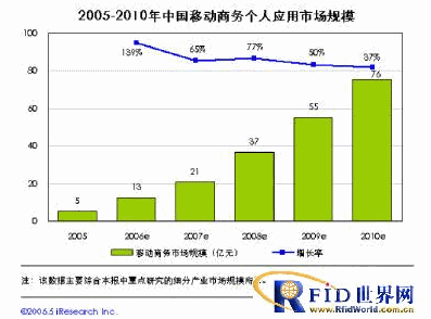 近年來,全球移動支付市場呈現高速增長的發(fā)展態(tài)勢。全球移動支付收入自2004年起實現成倍增長,從2002年的55億美元,增長到2005年的近200億美元,平均年增長率超過100%。全球已有30多個國家和地區(qū)開展了移動支付業(yè)務,而東亞地區(qū)被視作全球移動支付增長最快的區(qū)域,韓國、日本是當前全球領先的移動支付發(fā)展國家。目前在韓國,每月有超過30萬人在購買新手機時會選擇具備能儲存銀行交易資料并進行交易信息加密功能的手機;而日本則在移動支付的實現方式上進行了大膽而成功的嘗試,Felica近距離非接觸通信技術在日本逐漸盛行,在短短的大半年時間里,新增用戶數超過300萬,安裝非接觸式芯片讀卡器的零售商累計達到2萬多家。從交易規(guī)模來看,根據研究咨詢公司BWCS的預測,預計到2010年,全球僅移動現場支付(不包括虛擬支付)的市場規(guī)模將達到3800億美元。我國移動電子商務近些年來也得到了極大的發(fā)展,具體數據由如下圖所示:
