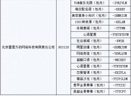 圖:北京雷霆萬均網(wǎng)絡科技有限責任公司被強制下線業(yè)務列表