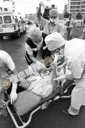 交警、派出所等多個(gè)部門聯(lián)動,維持事故現(xiàn)場秩序,控制肇事者。20分鐘后,傷員轉(zhuǎn)送到區(qū)中心醫(yī)院等,醫(yī)院啟動院內(nèi)綠色通道救治傷員。10時(shí)30分,演練結(jié)束。