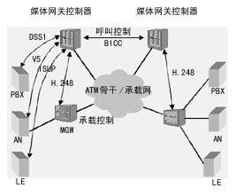 H.248協(xié)議控制媒體網(wǎng)關建立承載連接,利用BICC信令實現(xiàn)跨域的呼叫控制信令的傳遞。BICC和H.248目前均已標準化,這樣使得運營商可用不同廠商的產(chǎn)品組建網(wǎng)絡。