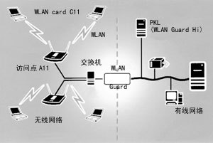 WLAN Guard是無線網(wǎng)絡(luò)中的安全設(shè)備。它保護(hù)著移動計算機(jī)用戶在無線網(wǎng)絡(luò)上的通信,保證非法用戶不能通過無線接入點(diǎn)進(jìn)入局域網(wǎng)。WLAN Guard與接入點(diǎn)A11和網(wǎng)卡C11一起,可提供獨(dú)特的安全解決方案。